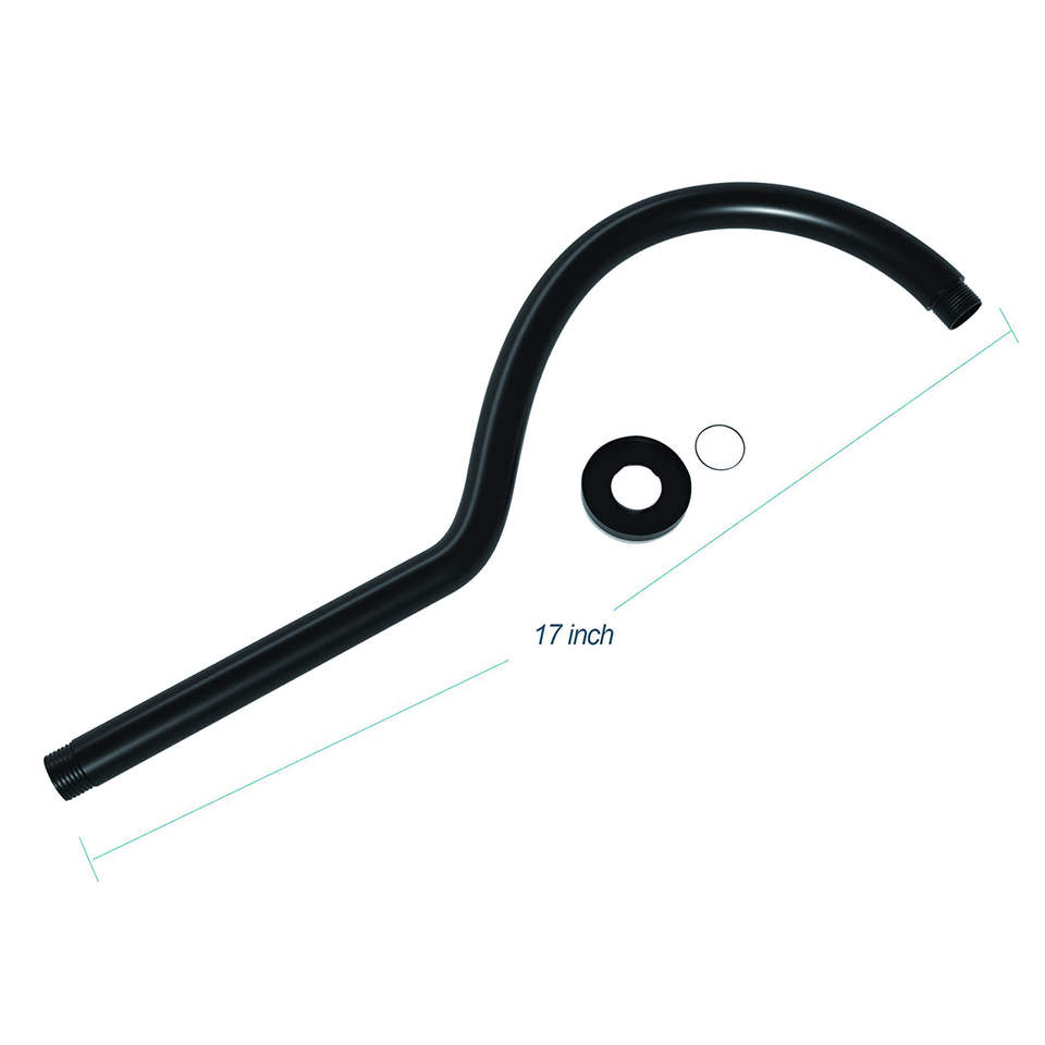 Brazo de ducha negro mate de 17 pulgadas con brida para accesorios de su baño