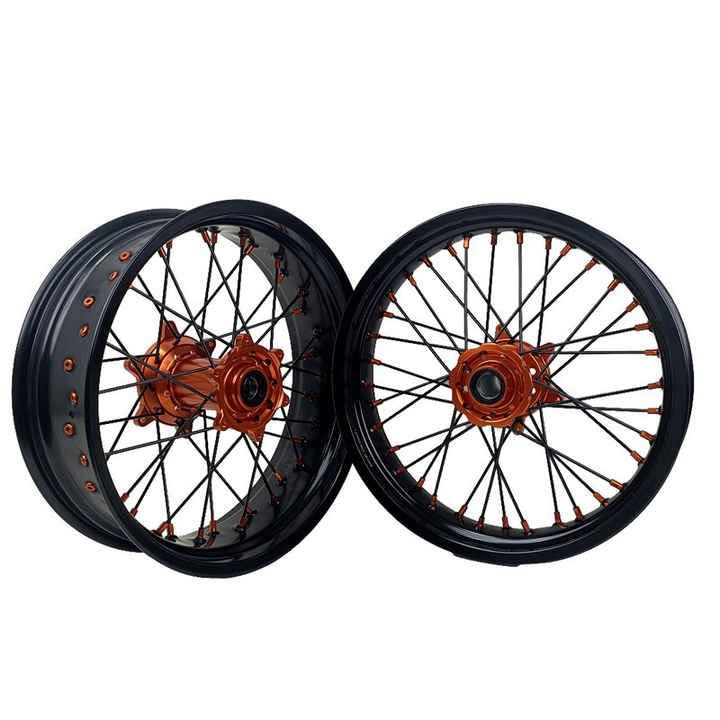 Juego de llantas de ruedas Supermoto de 17 pulgadas compatibles con K TM 125 250 450 530cc EXC SXF XCF 2003-2024 llanta negra de cubo naranja
