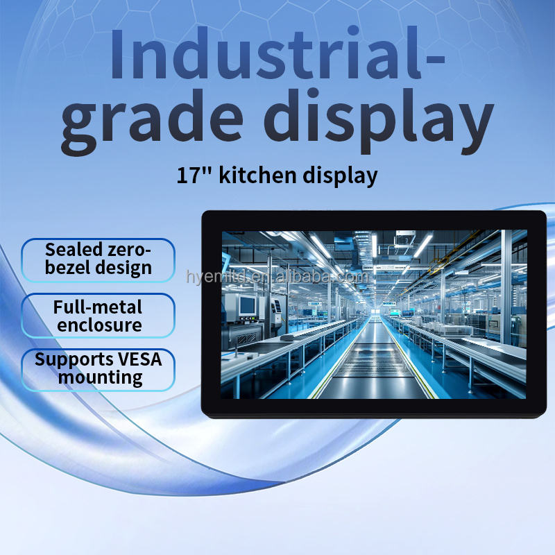 Pantalla de Cocina Interior de 17 Pulgadas, 12V, con Construcción Metálica, Brillo de 250cd, Montaje VESA