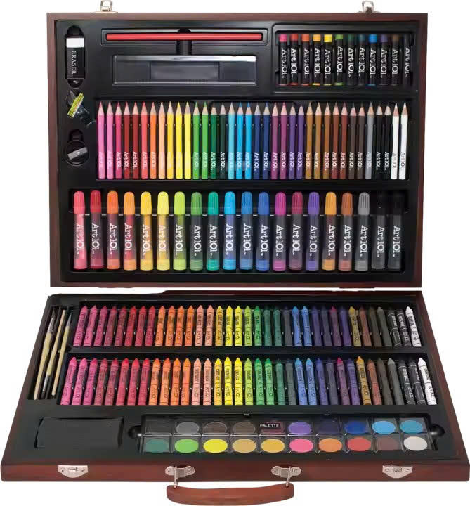 Kit de dibujo y escritura de artista de 173 piezas con lápices de colores, lienzo, caja de madera, juego de suministros de arte