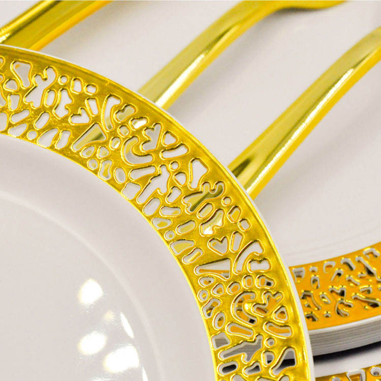 175 Uds. Juegos de vajilla desechables de plástico de alta calidad con borde dorado para fiesta