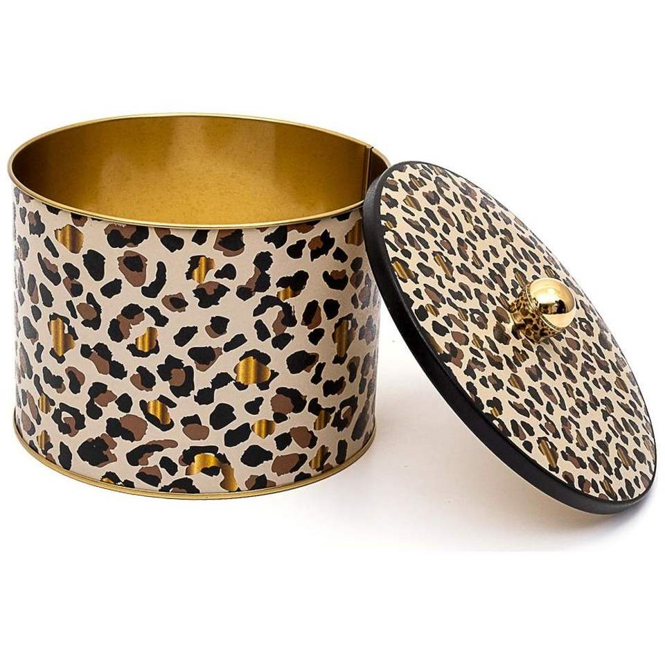 Mango de perilla de recipiente redondo de Metal con patrón de estampado de leopardo dorado de 175x130mm para almacenamiento y contenedor de alimentos