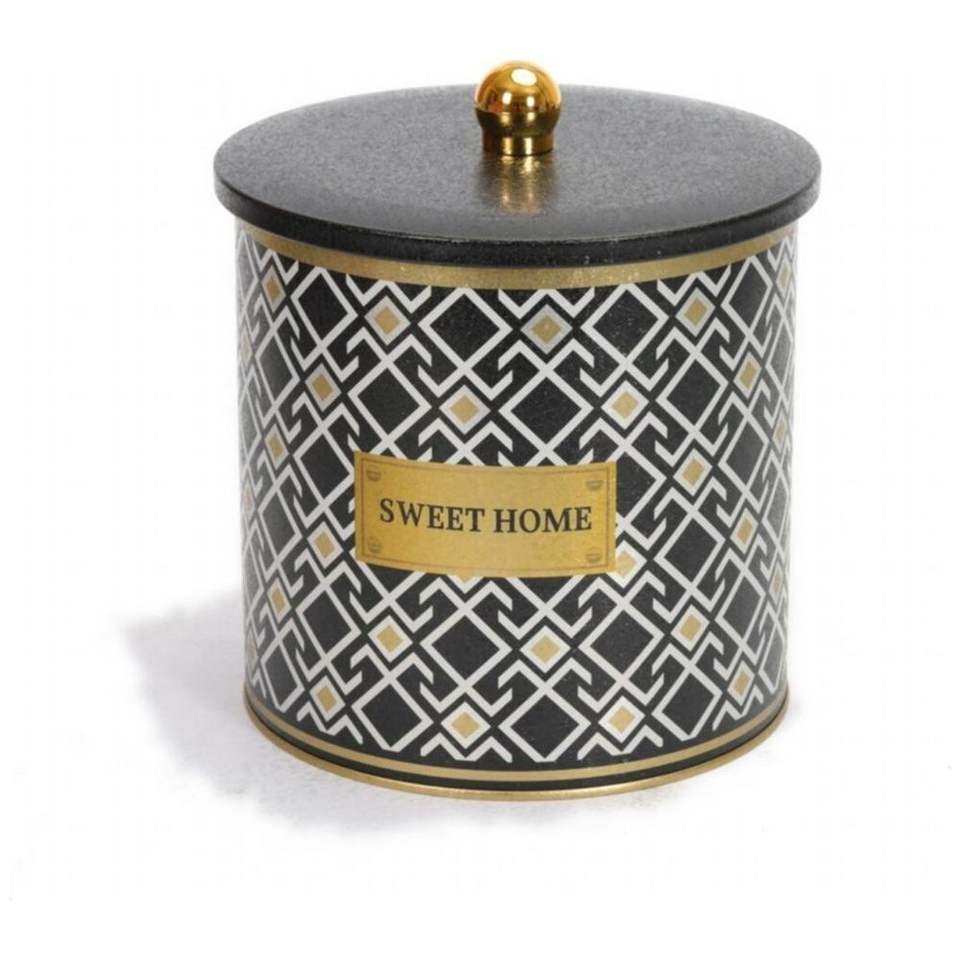 175x180mm Diseño de patrón sin costuras Líneas geométricas Fondo negro 4.1L Recipiente redondo de metal con mango de perilla Fondo negro