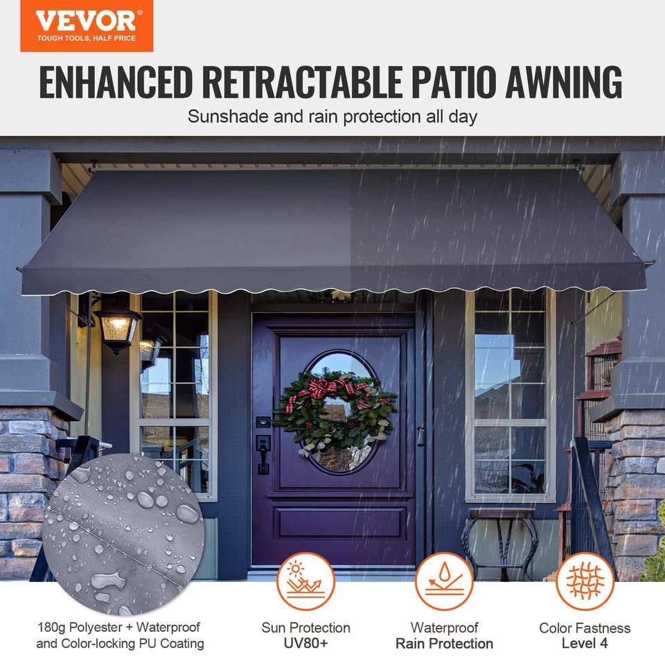 Toldo Retráctil para Patio Sunsetter de 178 x 47 Pulgadas, con Manivela Manual, para Terraza o Jardín