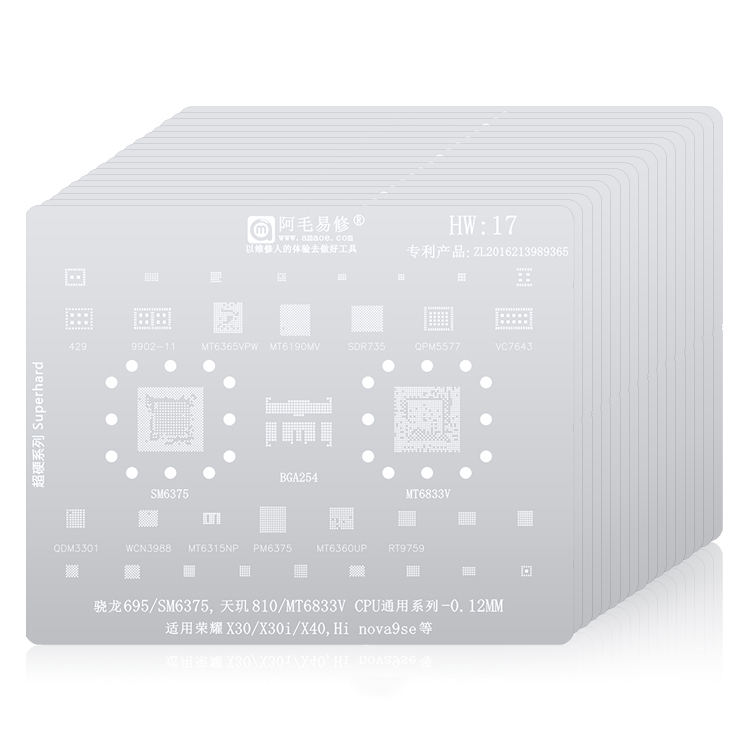 Amaoe BGA Reballing Stencil Reparación de CPU de Malla de Estaño para Android Huawei Mobile Series Honor/P7/P8/P9/Mate/Nova/HI, 17 Unidades/Set