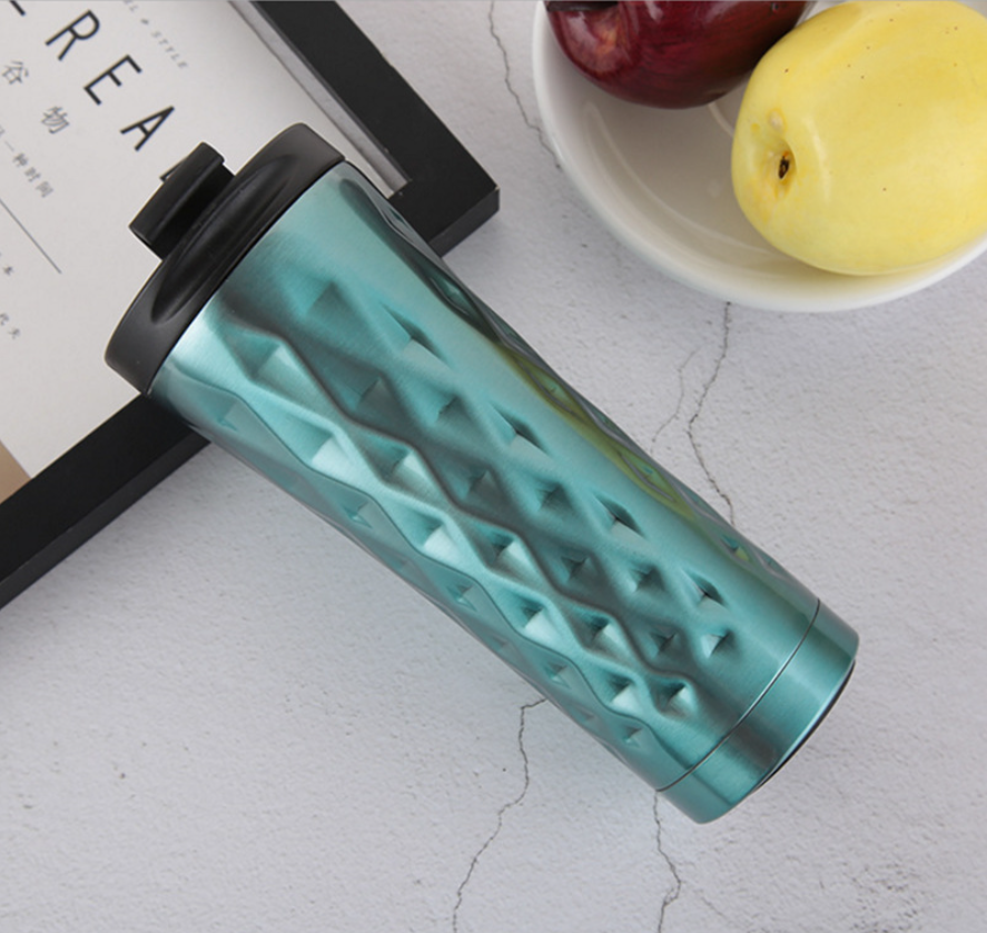 Taza de coche creativa en forma de diamante de acero inoxidable de 17oz, cubierta portátil, taza de bebida recta aislada al vacío, Impresión de regalo caliente