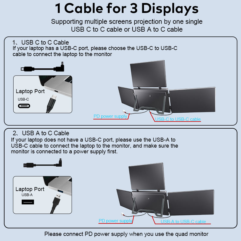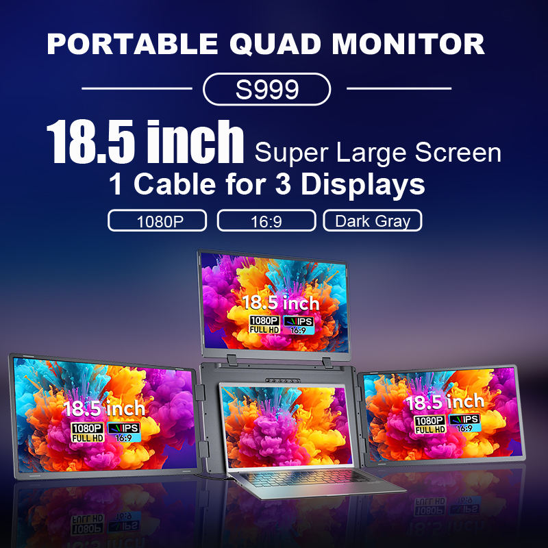 Monitor Cuádruple de 18.5 Pulgadas, Pantalla Súper Grande, Conexión USB C Única, IPS FHD, Monitor Triple para Negocios