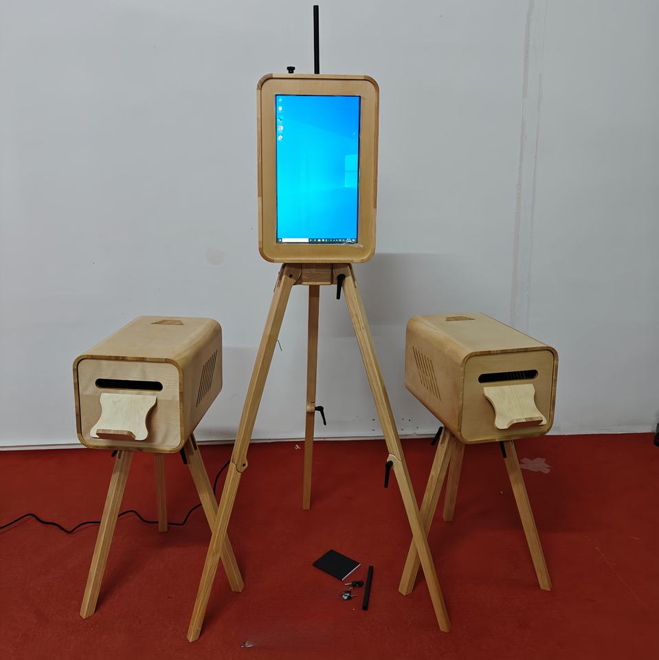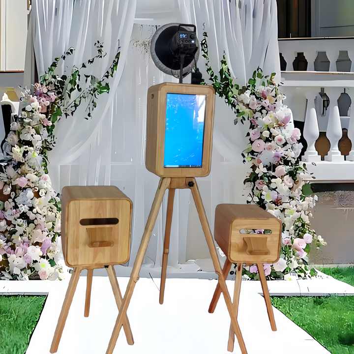 Cabina de Fotos de Madera de 18.5 Pulgadas con Impresión Automática para iPad, Cámaras Réflex Digitales y Cámaras DSLR, para Fiestas y Bodas