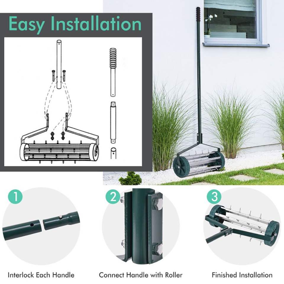 Aireador Manual para Césped de 18 Pulgadas con Mango Antideslizante y Diseño de Rodillos con Púas para un Fácil Uso