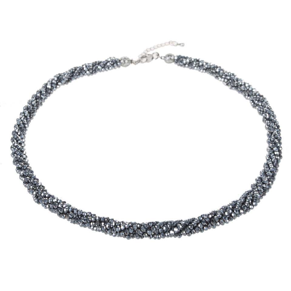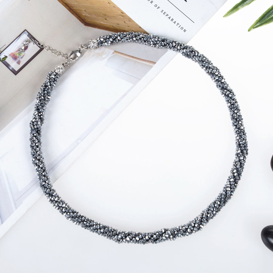 Collar de Cristal Gris de 18 Pulgadas con 4 Hileras de Cuentas Facetadas Trenzadas de Cristal de 3 mm