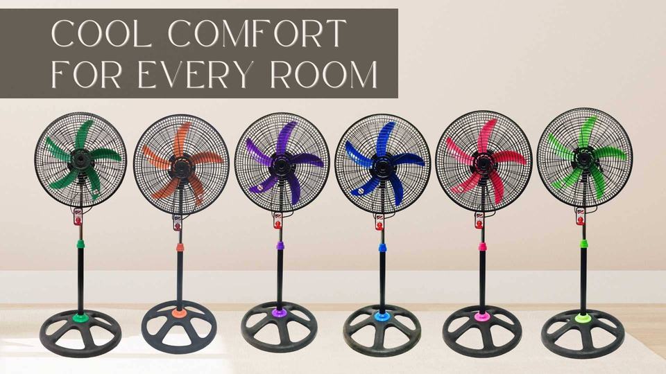 Parrilla de plástico de 18 pulgadas, 5 aspas de plástico, ventilador de pie de pedestal oscilante de 110V