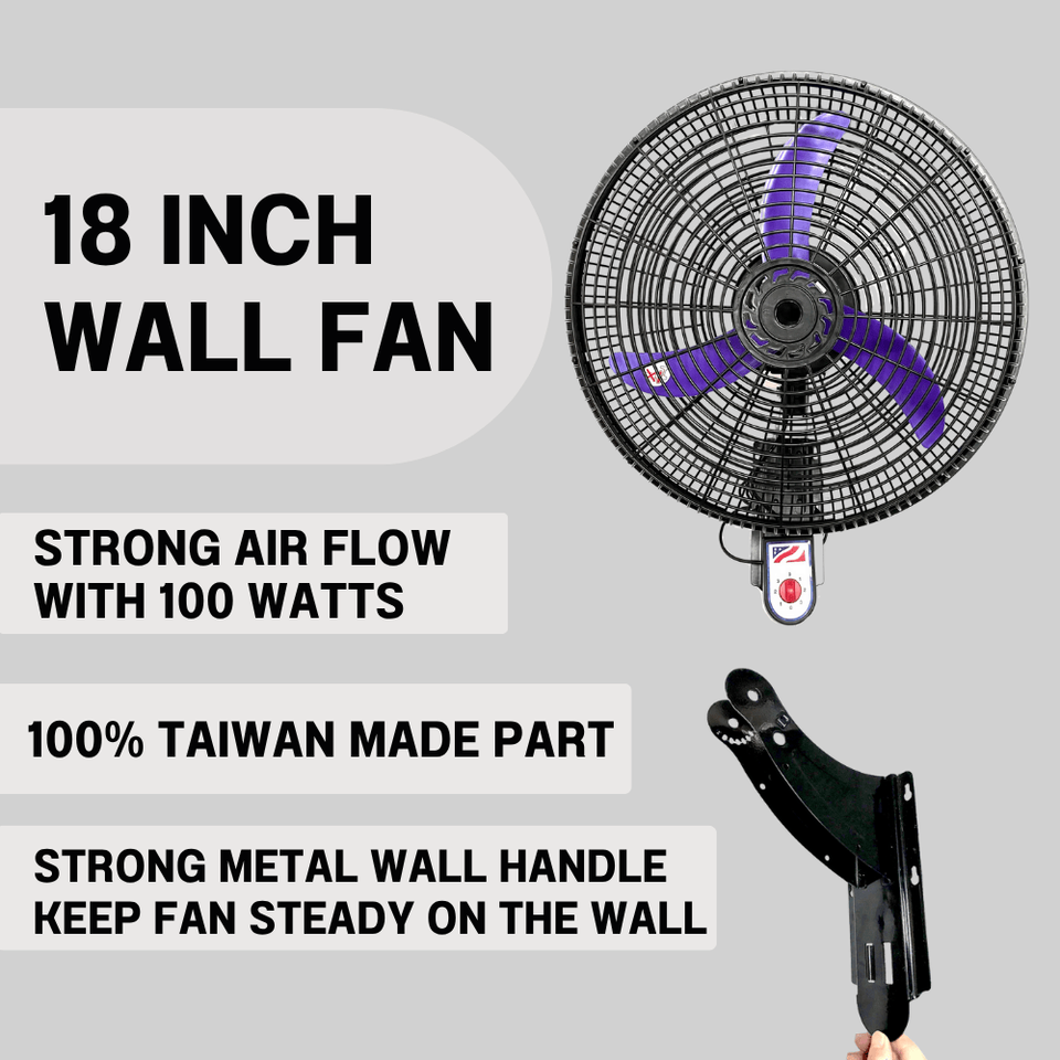 Ventilador de pared de 18 pulgadas Ventilador de soporte de base de rueda 3ABS Control mecánico para uso doméstico RV Garaje Hotel