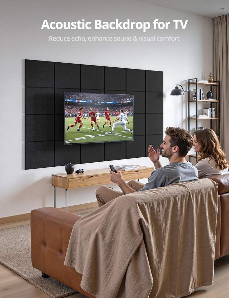 Paquete de 18 Paneles Acústicos Autoadhesivos Negros Cuadrados Ignífugos de 12x12x0.4 Pulgadas, Alta Densidad, Absorbentes de Sonido, Modernos, para Apartamentos y Hoteles