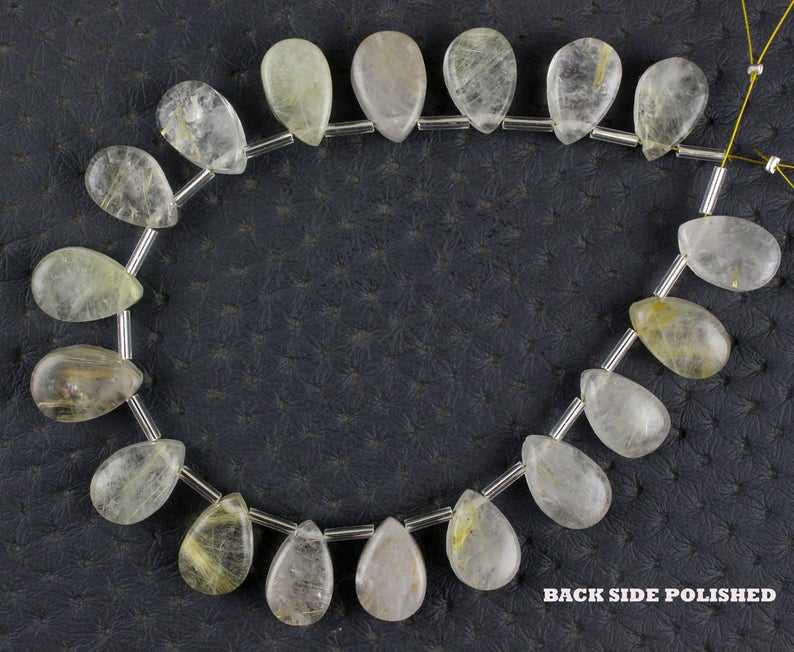Hebra de 18 piezas de piedras preciosas de rutilo dorado Natural, fabricación de joyas en forma de pera, pelo de cuarzo, colección de piedras, corte de estilo