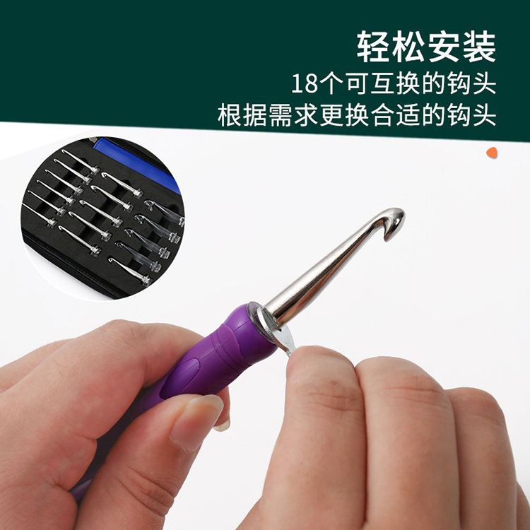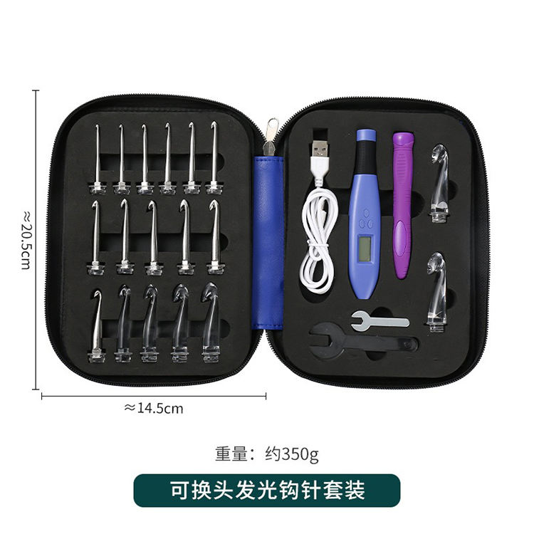 Juego de ganchos de ganchillo de 18 tamaños con luz LED y Contador de puntadas y filas, mango ergonómico Digital, Kit de tejer, herramienta de bricolaje para principiantes