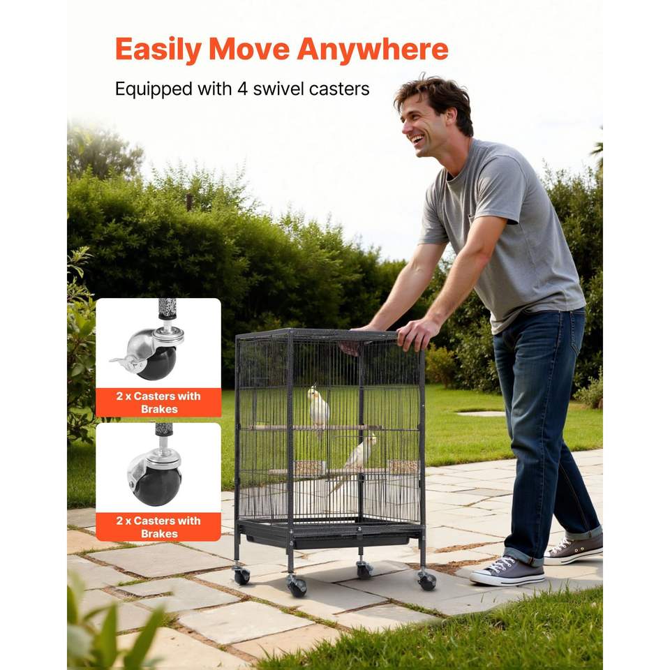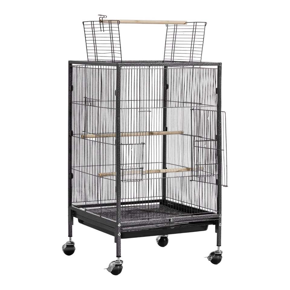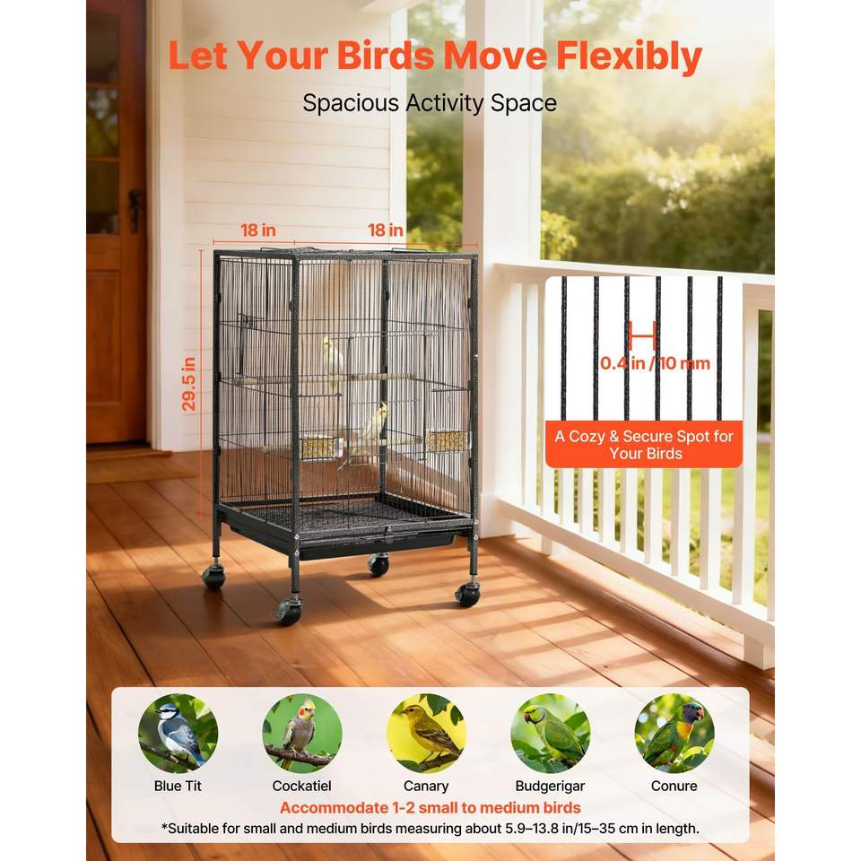 Jaula para Pájaros de Hierro Forjado de 18 x 18 x 30 Pulgadas con Techo Abierto y Bandeja Extraíble, Comederos de Plástico, Suministros para Pájaros