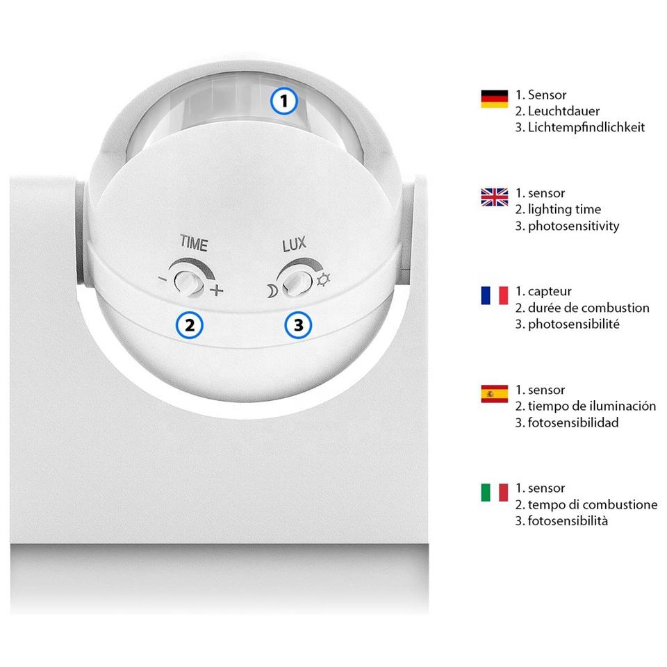 Descripción:Sensor de movimiento infrarrojo de seguridad IP44 al aire libre
