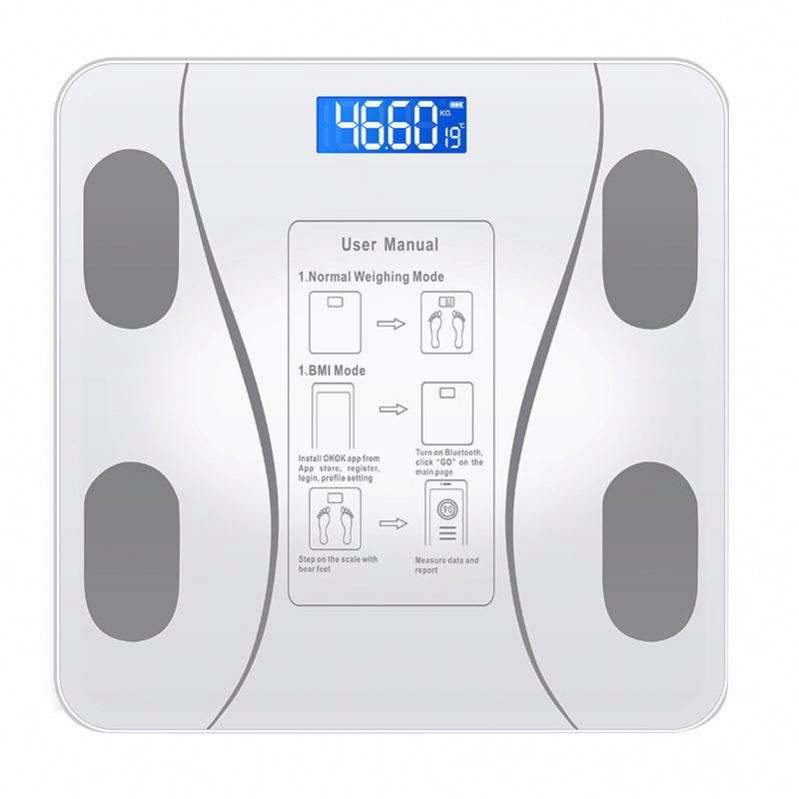 Wifi, Bluetooth, Contenedor medidor de agua, Prueba de contenido de grasa corporal y agua, Medición de peso, Medición de grasa, Medidor de calorías, IMCFunción