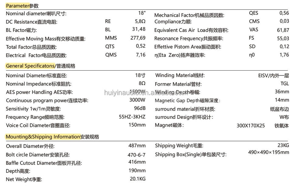 Altavoz Profesional de Audio de 18 Pulgadas y 1500w RMS con Bobina de Voz de 6 Pulgadas para Sistema de Sonido Line Array, Modelo 18150-004