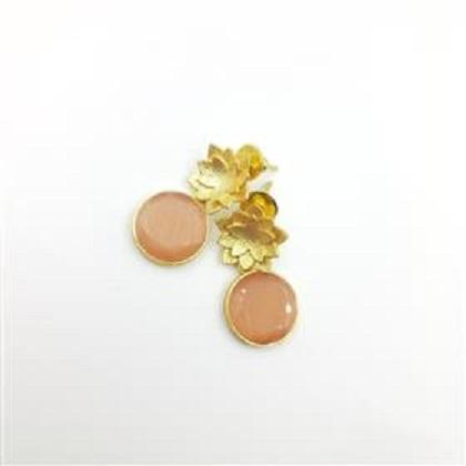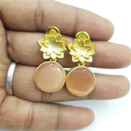 Pendientes Colgantes de Piedra Preciosa Melocotón Monalisa con Baño de Oro de 18K, Diseño Redondo de Moda, Venta al por Mayor