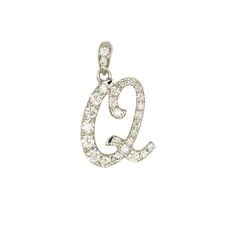 Colgante con la letra Q en diamantes de oro de 18 quilates, 0376 quilates, 28 diamantes, 151 g, joyería versátil y personalizada