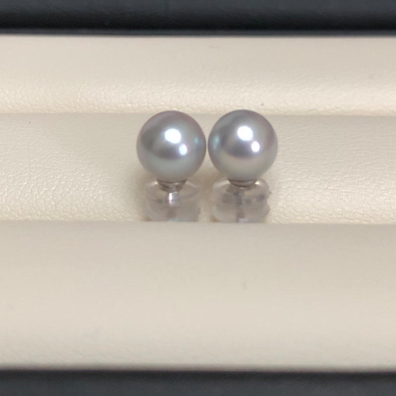 Pendientes de Perlas Akoya Japonesas de Agua Salada de 18K, Color Azul Grisáceo, Lino Genuino, Diseño Redondo, Luz Intensa, Diseño Extremadamente Delicado