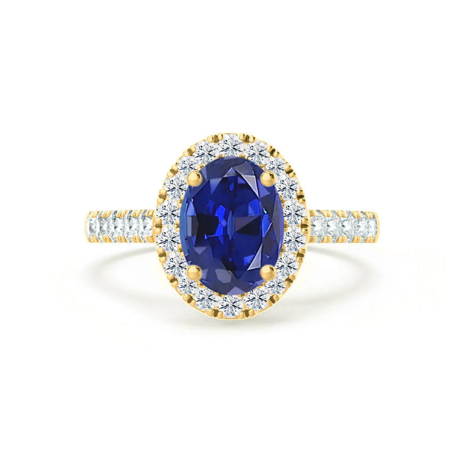 Anillo de Oro de 18K con Zafiro Azul Cultivado en Laboratorio, Corte Ovalado de 8x6mm | Anillo de Compromiso Minimalista para Mujer | Joyería al por Mayor y Dropshipping