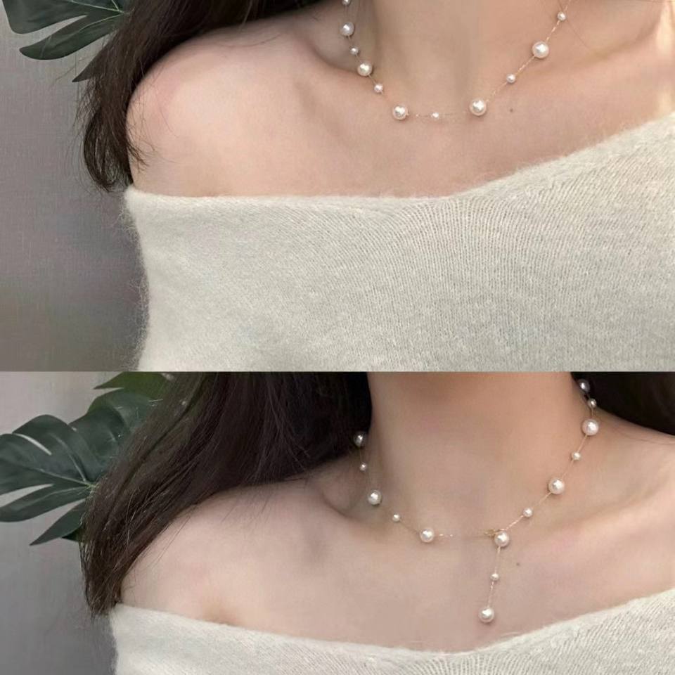 Collar de Cadena de Hueso con Cierre de Oro de 18K, Collar de Perlas Naturales de Agua Dulce de 4-7.5 mm, Collar de Cielo Estrellado, Collar Blanco para Bebé