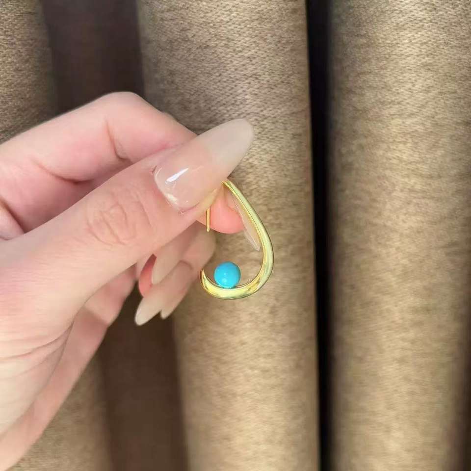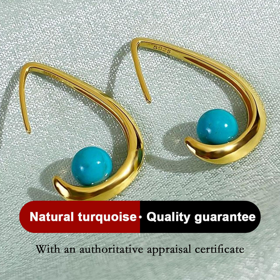 Pendientes de lágrima de cuentas redondas de turquesa artificial chapados en oro de 18 quilates geométricos clásicos 6Mm +