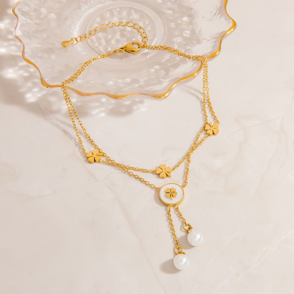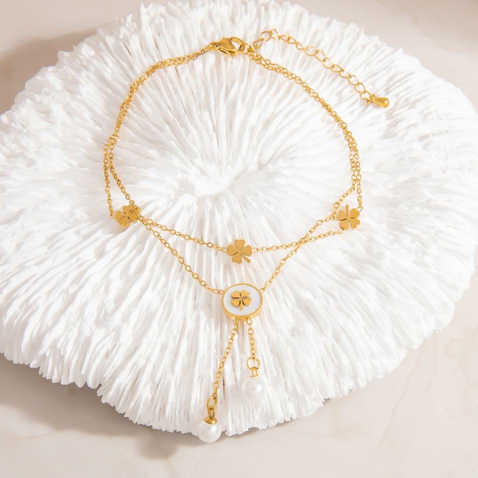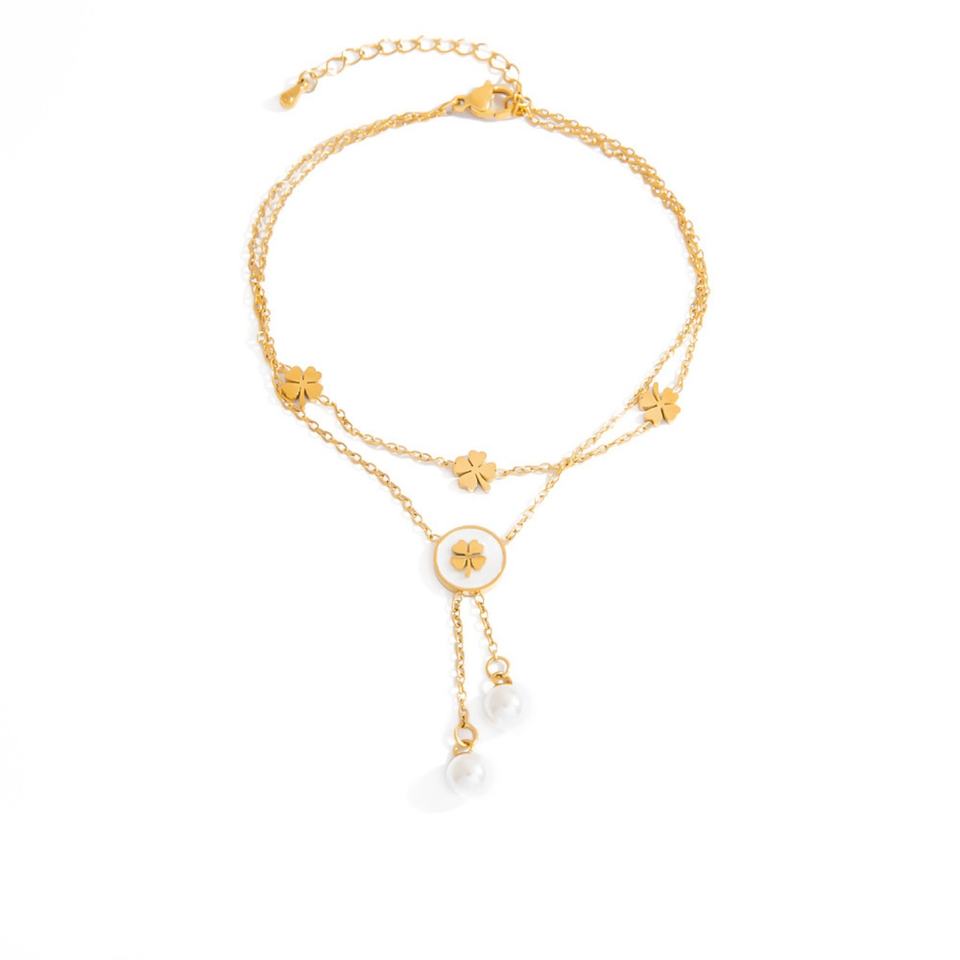 Tobillera con Colgante Chapada en Oro de 18K, de Doble Capa, de Acero Inoxidable, que Conserva el Color, a la Moda, Versátil y Elegante