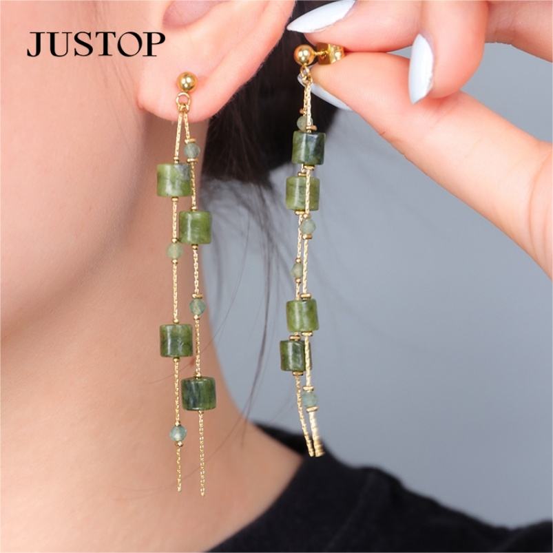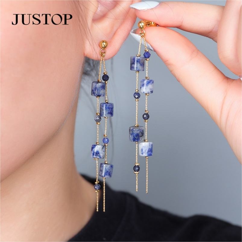 Pendientes de Cristal con Baño de Oro de 18K y Cadena de Acero Inoxidable, Joyería Moderna para Mujer, Regalo de Aniversario, Modelo Justop