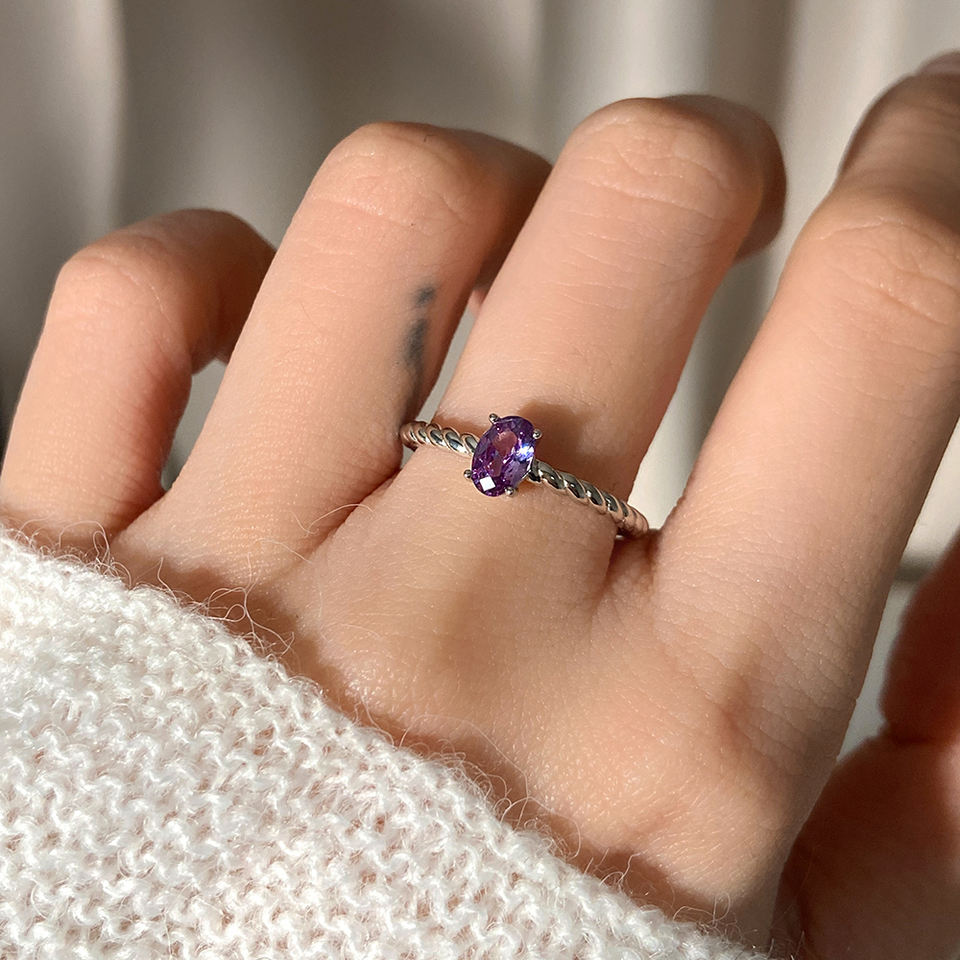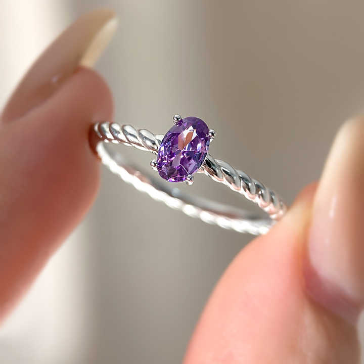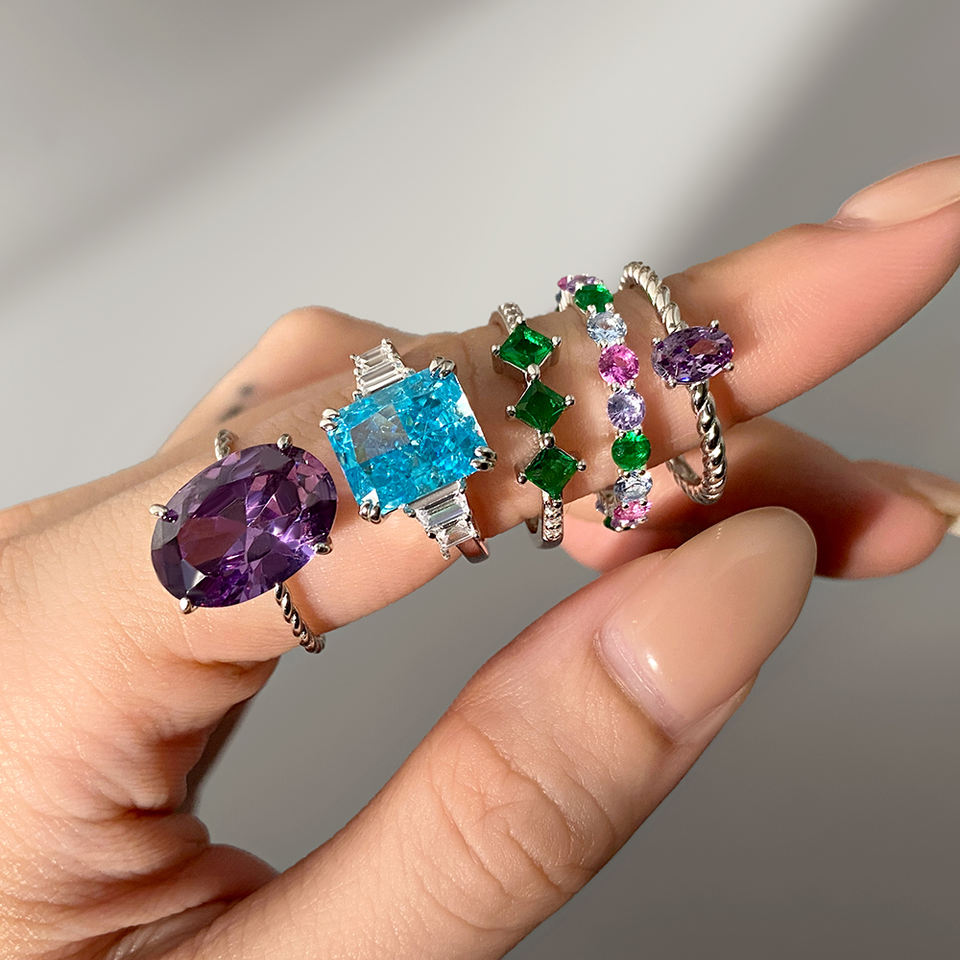 Anillos de Circonia Cúbica Chapados en Oro de 18K, Coloridos, Rosa, Verde, Morado, Ovalados, para Mujer