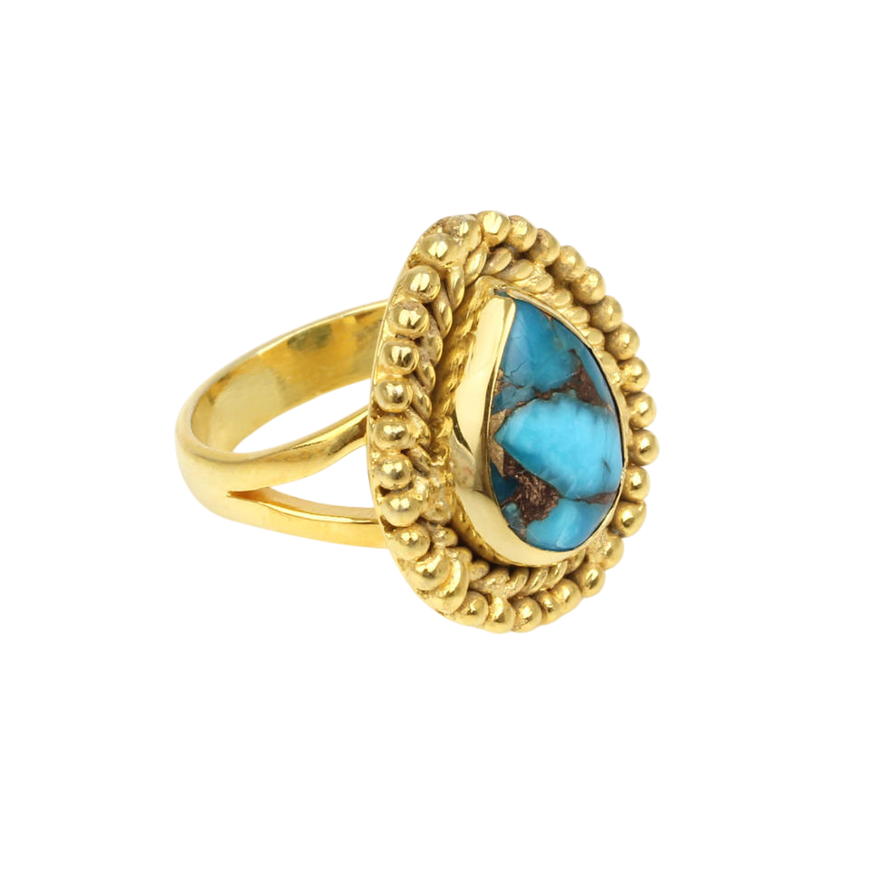 Nombre del Producto:Anillo de Plata de Ley con Turquesa Cobre Azul Natural y Baño de Oro
