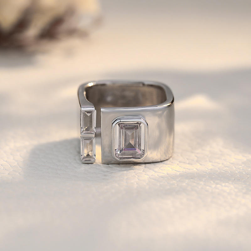 Anillos Abiertos Geométricos Chapados en Oro de 18K, Anillos Minimalistas Gruesos para Dedos, Joyería para Mujer y Hombre, Anillo de Plata de Ley 925 con Circonita