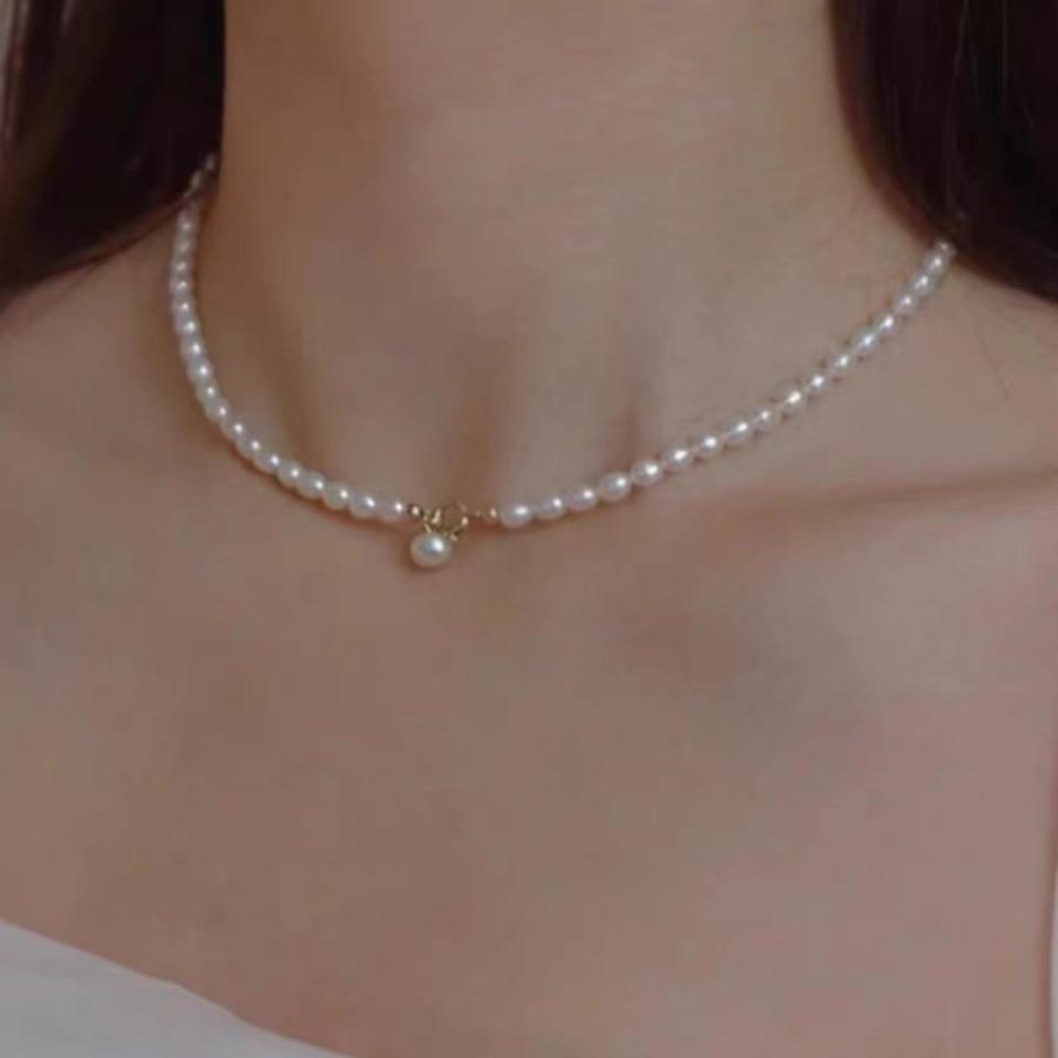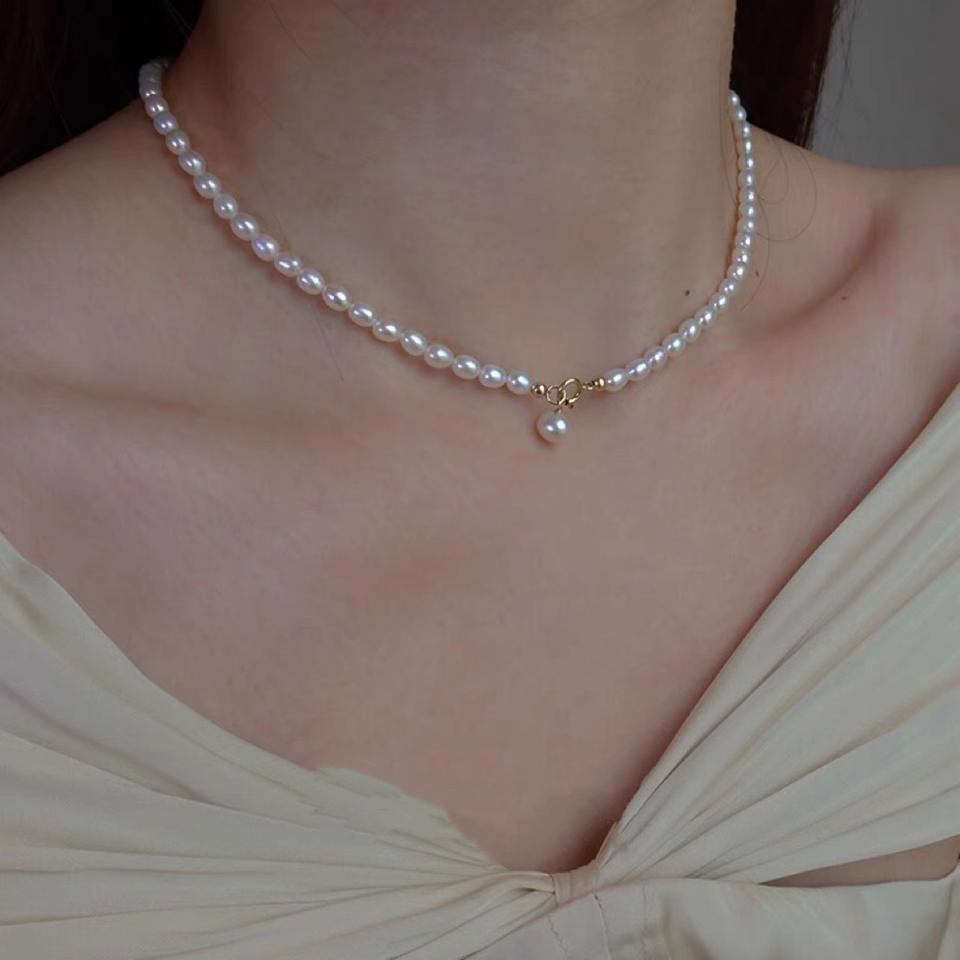 Collar de Perlas Naturales de Agua Dulce Chapado en Oro de 18K, Plata S925 Reforzada, Elegante y Moderno, Estilo Hada