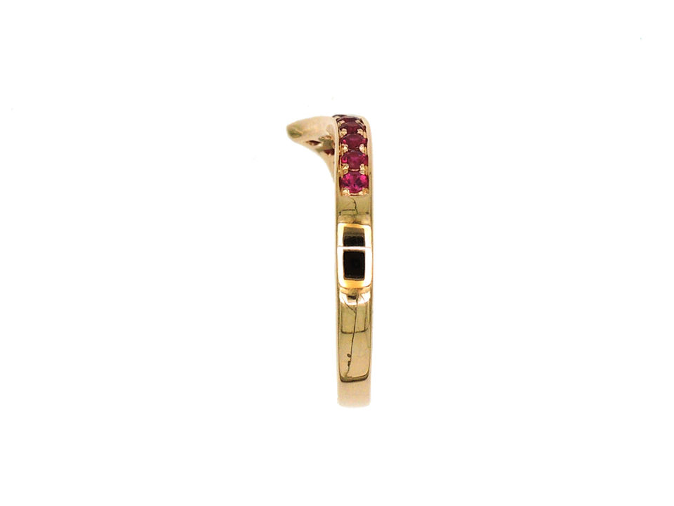 Anillo de Oro de 18K con Rubíes en Forma de V, Anillo de Boda Apilable Minimalista, Joyería de Lujo para Mujer