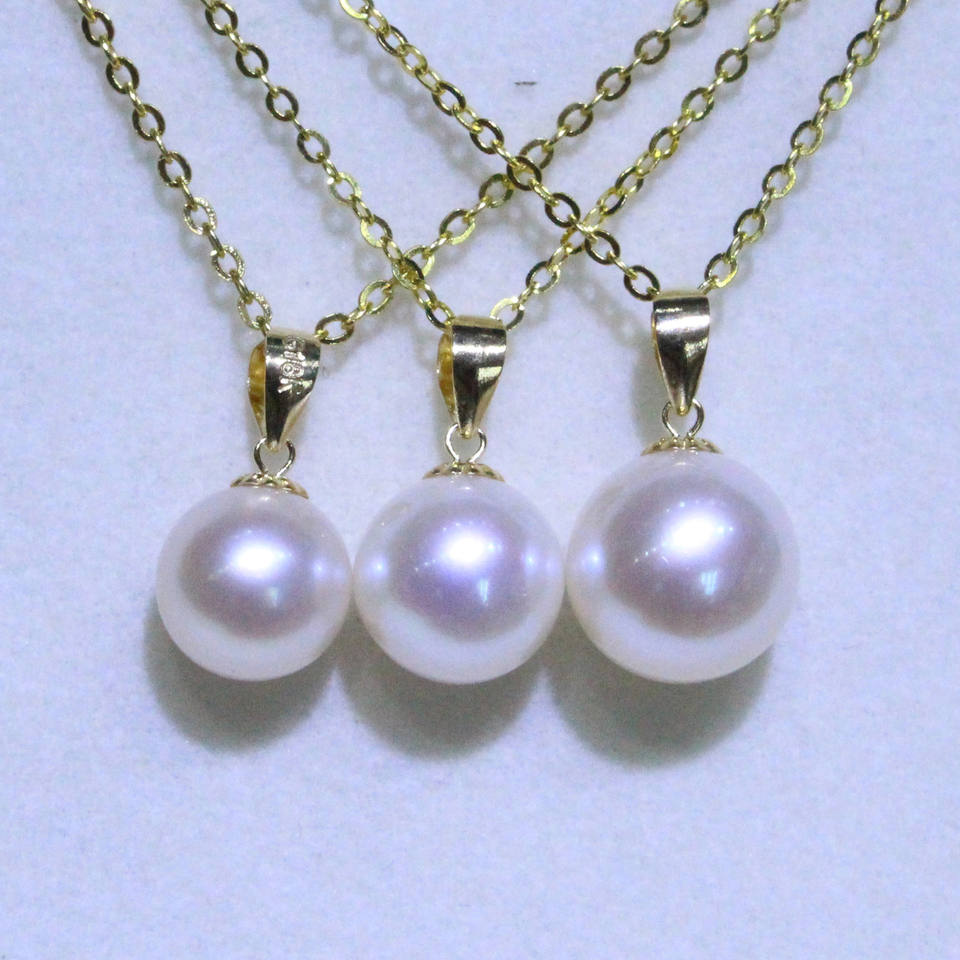 Collar de Perlas de Oro Natural con Cierre de Broche Universal de 16-17 mm, con Circonita y Microdefectos, en Caja de Regalo