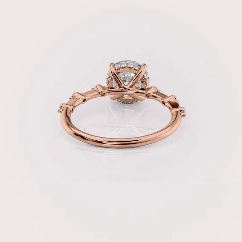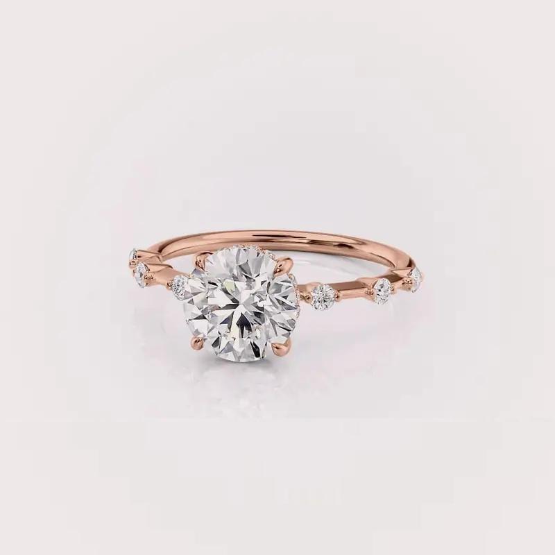 Anillo de Compromiso de Oro Rosa de 18K con Diamante Cultivado en Laboratorio, Corte Redondo, Banda Pavé
