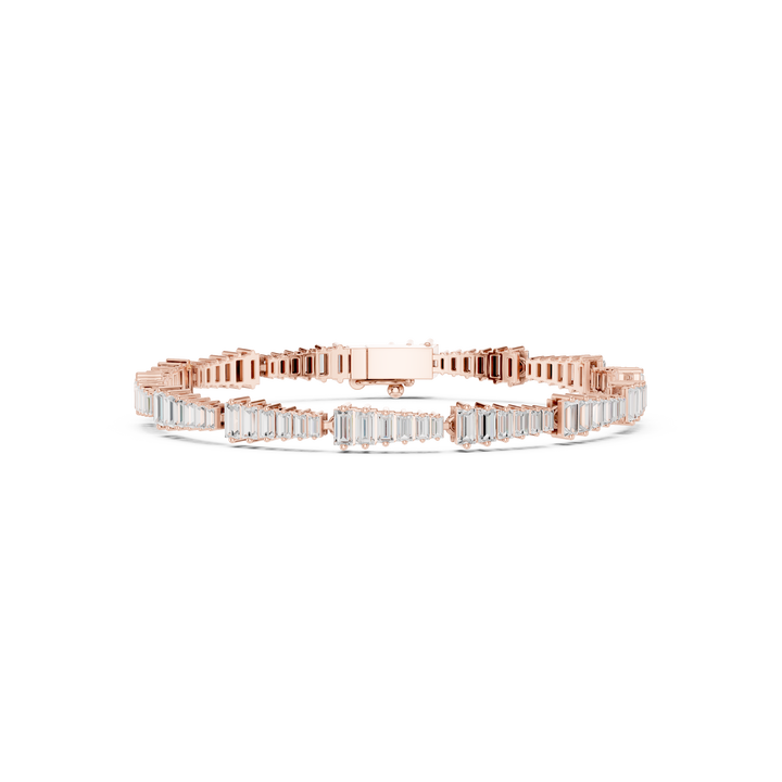 Pulsera de tenis de lujo con diamantes cultivados en laboratorio de oro rosa de 18 quilates, pulsera de eslabones con diamantes de corte esmeralda en oro rosa para mujer
