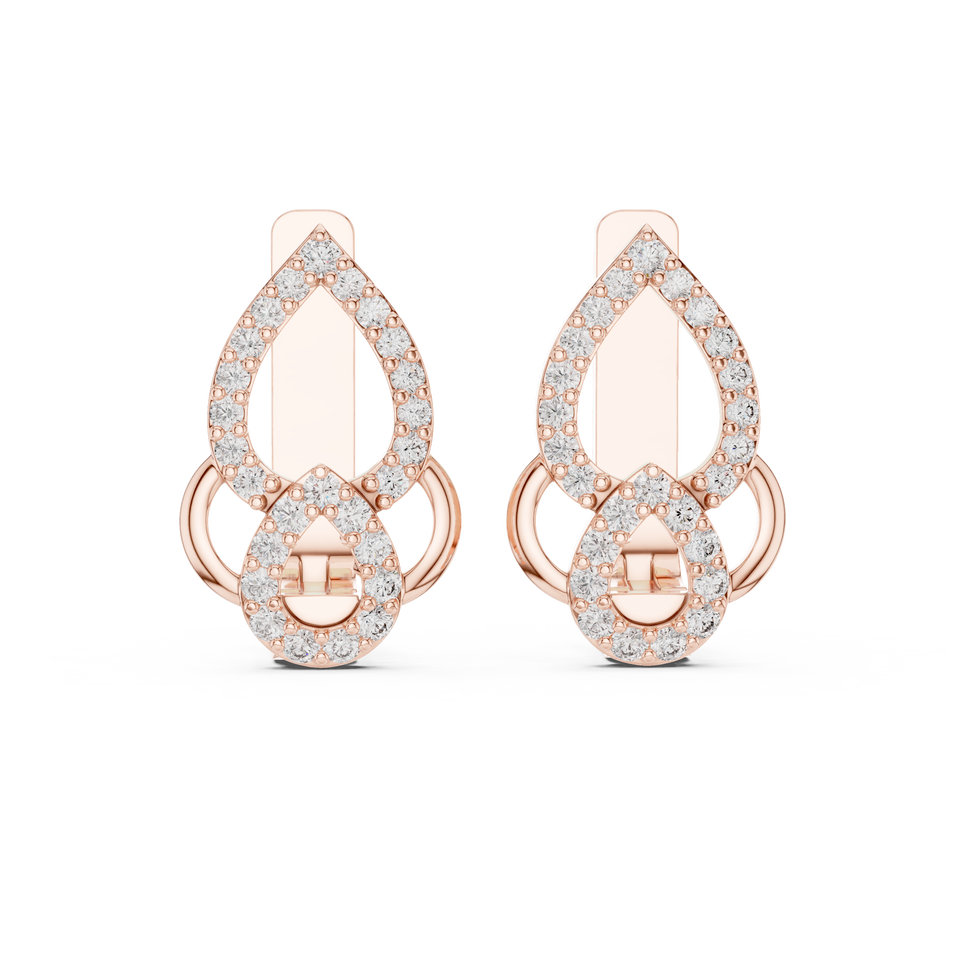 Pendientes de Oro Rosa de 18K con Diamante Cultivado en Laboratorio de Corte Redondo en Forma de Lágrima con Halo, Menos de 1 Quilate, Lujosos para Mujer