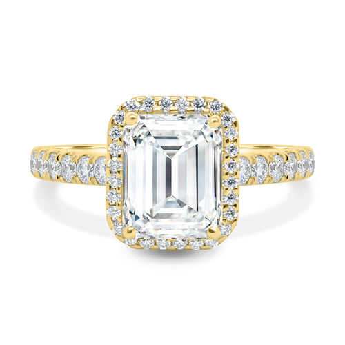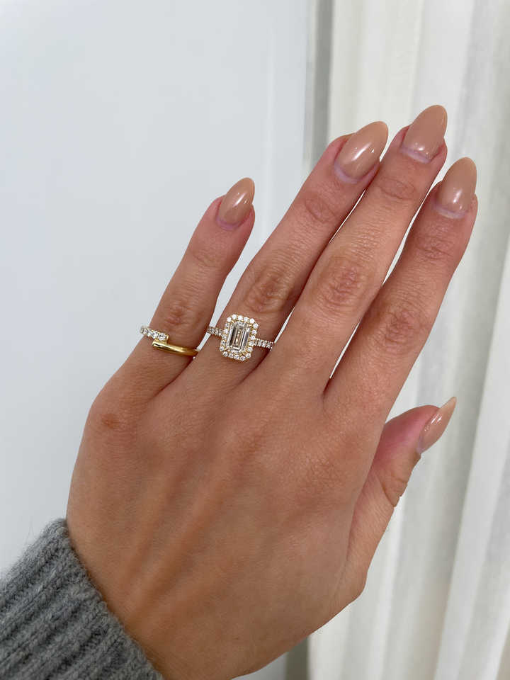 Anillos de compromiso hechos a mano lujosos con diamantes de laboratorio de corte esmeralda de oro macizo de 18 quilates con diseño de Halo oculto, anillos de oro puro para mujer
