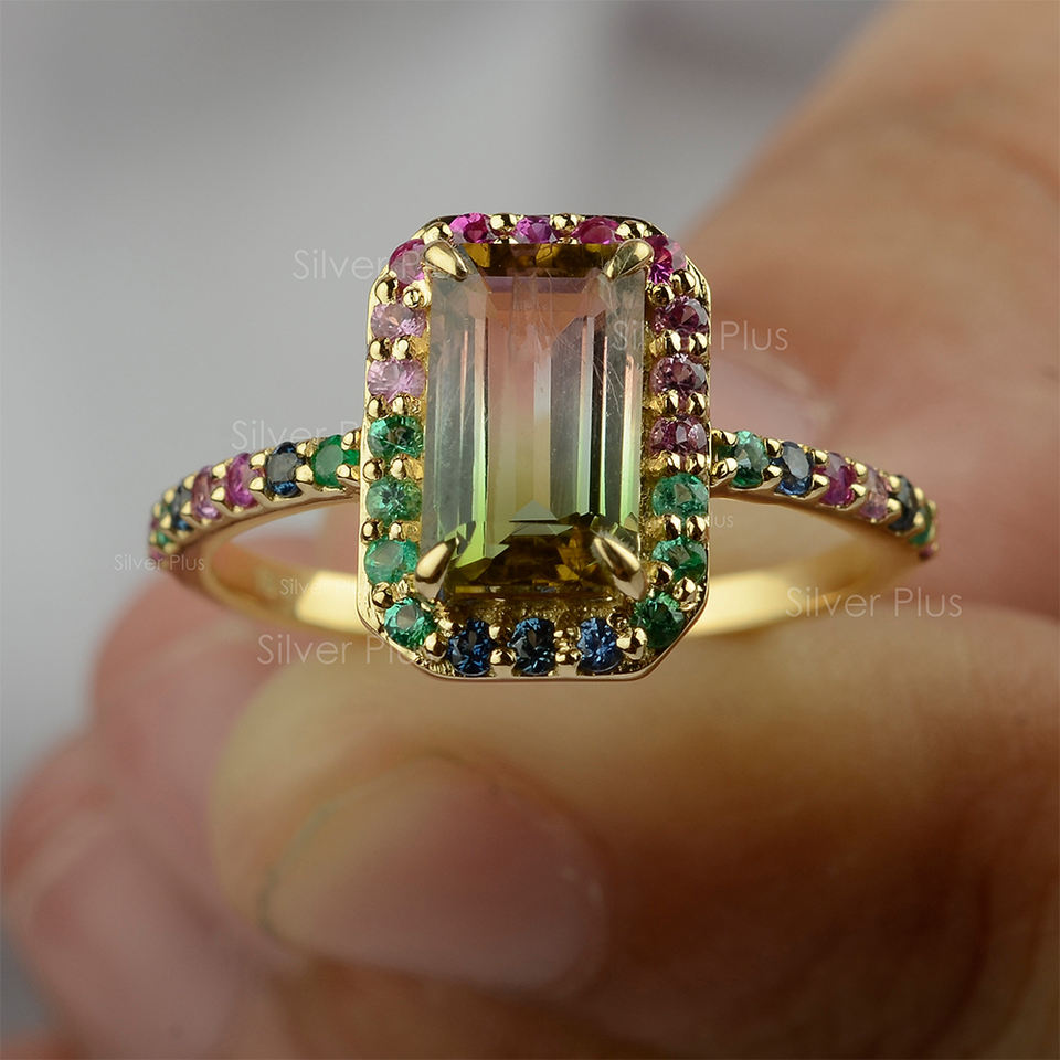 Anillo de diamantes de zafiro múltiple de turmalina sandía oro macizo de 18 quilates joyería de moda para bodas precio de mercado producir 10K/14K