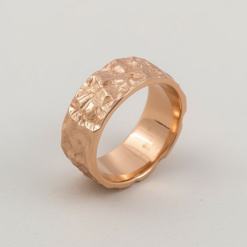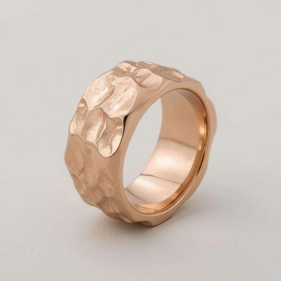 Anillo con textura de pepita de oro rosa reciclado sólido de 18 quilates | Joyería fina minimalista hecha a mano de Tailandia