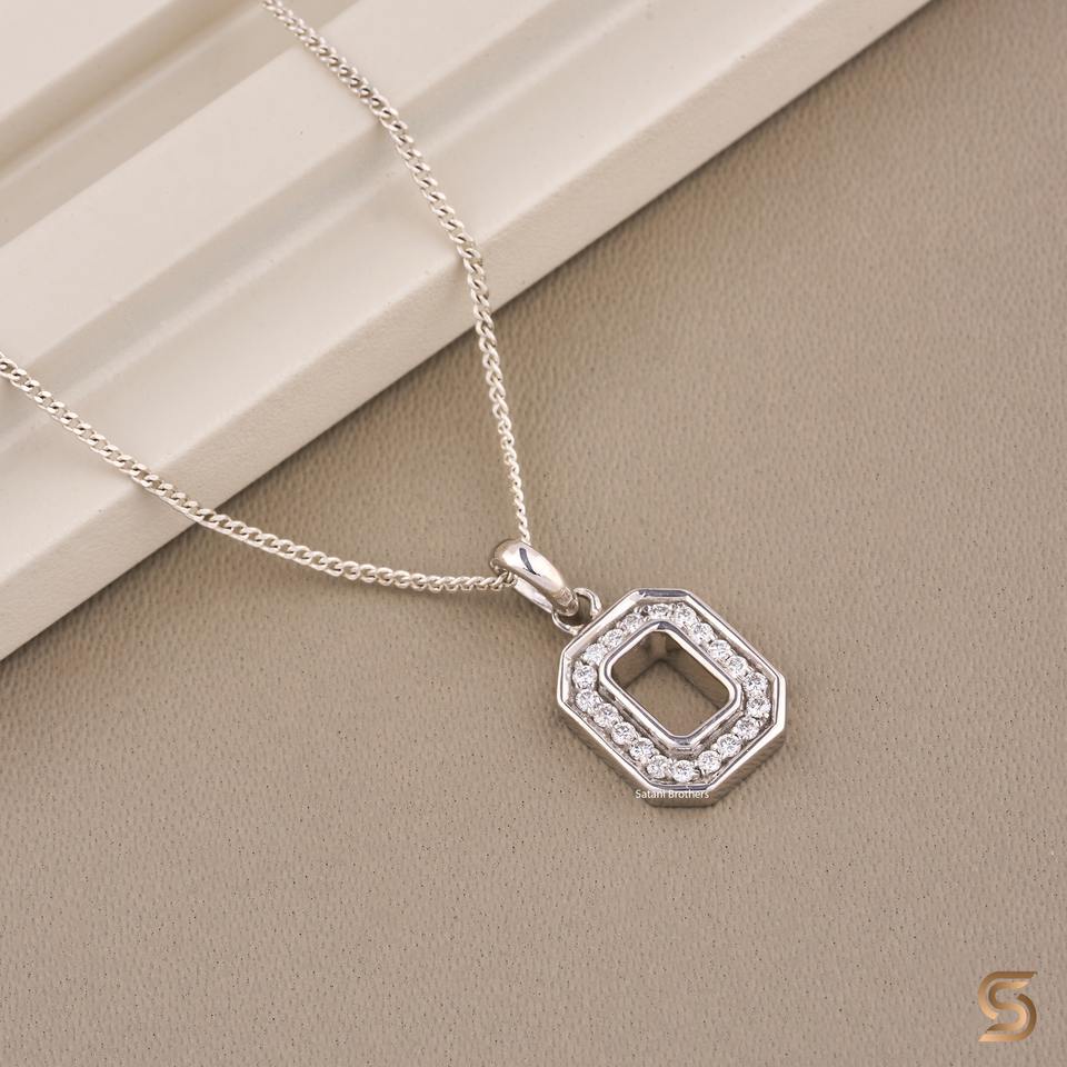 Collar con colgante de oro blanco macizo de 18 quilates con diamante cultivado en laboratorio, corte redondo, octágono, halo minimalista, para mujer