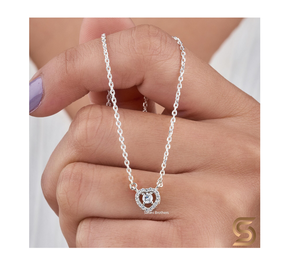 Collar de oro blanco macizo de 18 quilates con halo de diamantes cultivados en laboratorio, colgante de joyería fina, minimalista y elegante, regalo para mujer