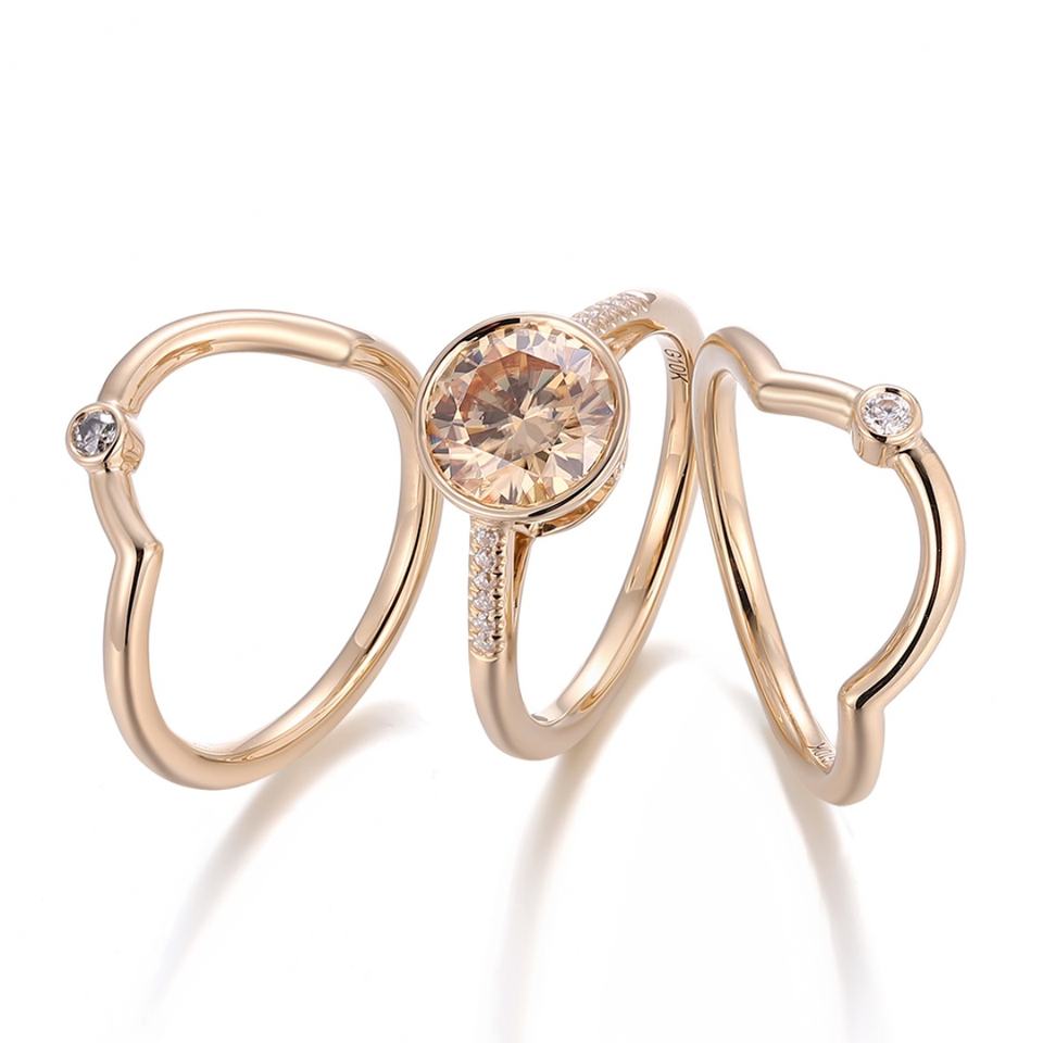 Anillo de Moissanita Color Champán en Oro Amarillo Sólido de 18K, Anillo de Moissanita Estrella para Mujer, Joyería Fina, Despacho de Aduanas Gratuito