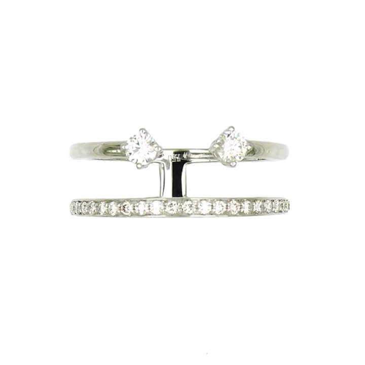 Juego de Anillos Apilables de Oro Blanco de 18K con Diamantes, Dos Piezas: Banda Abierta y Anillo Solitario, Joyería Minimalista de Lujo para Mujer