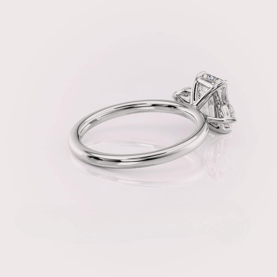 Anillo de Compromiso de Tres Piedras con Diamante Cultivado en Laboratorio, Corte Esmeralda, Oro Blanco de 18K, Fabricante