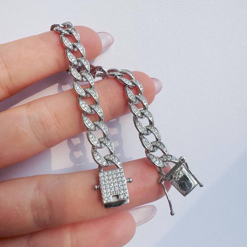 Keyword:18K White Gold Plated Cuban Chain Bracelet Elegant Jewelry
