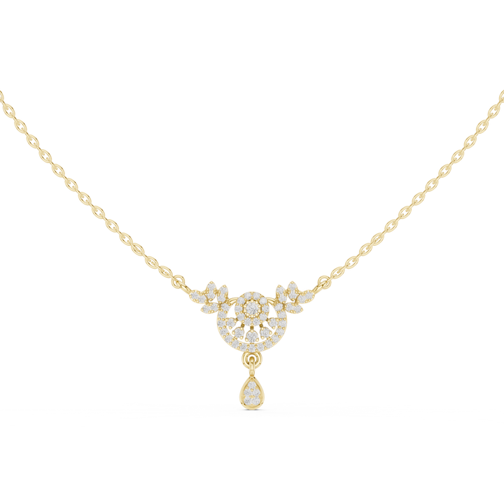 Collar con Colgante de Diamante Cultivado en Laboratorio, Corte Brillante Redondo, Halo Floral, Chapado en Oro Amarillo de 18K, Joyería Nupcial de Lujo para Mujer